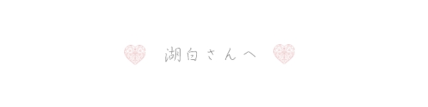 それから10周年にお祝いのお言葉まで頂きまして本当にありがとうございます…!こうして10周年を迎えることが出来て、今もサイトをやっていられるのは湖白さんやサイトにお越し下さる方々のおかげです。本当にありがとうございます!「毎日」というお言葉を聞いてとても励みになりましたし、「大好き」という言葉を頂けて歓喜しております…!更新に間が空いてしまったりして申し訳ない思いも常々ありますが、湖白さんに頂いたお言葉のおかげでこれからも頑張ろうと思えることが出来ました!応援のお言葉もありがとうございます。これからも少しでも楽しんで頂けるよう、私自身も楽しみながらサイトをやっていきたいと思います♪この度はリクエスト、そして素敵なお言葉を頂きありがとうございました!
